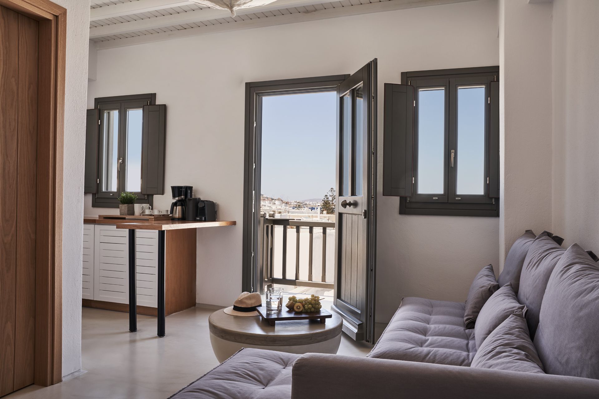 Just a few steps away from the famous Windmills of Mykonos and Little Venice, Maison Central is a two bedroom apartment in the heart of Mykonos town. Offering an amazing view of Mykonos Town, our apartment is ideal for families or a group of friends. The property can accommodate up to 5 guests.