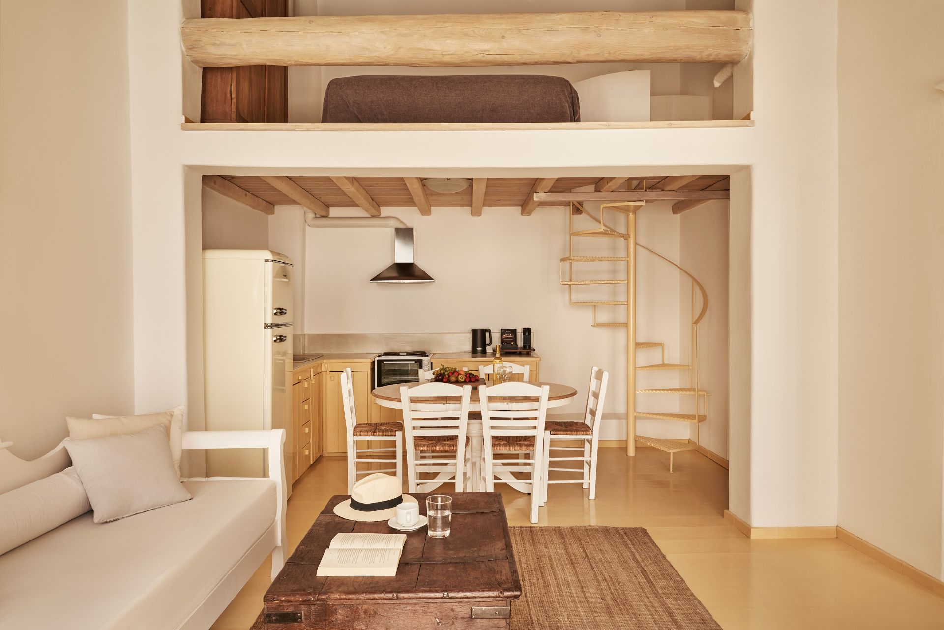 This centrally located rustic Maisonette -apartment is the ideal place for families and group of friends. Offering 3 double beds it can accommodate up to 6 people. Right in the heart of Mykonos Town with all restaurants, shops and bars in Mykonos town within walking distance. The property can accommodate up to 6 guests.